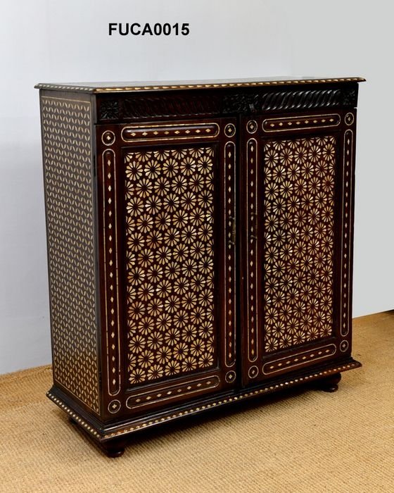 Product Description:An antique Rosewood cabinet this is beautifully inlaid with Mother of Pearl floral pattern. These designs are copied from old Syrian motifs, the cabinet is about 100 years old and Mother of Pearl inlay is new.