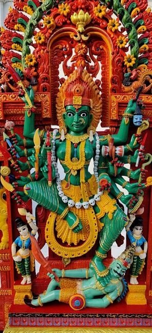 Product Description:Kali has been worshipped by devotional movements and tantric sects variously as the Divine Mother, Mother of the Universe, Adi Shakti, or Adi Parashakti. Shakta Hindu and Tantric sects additionally worship her as the ultimate reality or Brahman.She is also seen as the divine protector and the one who bestows moksha, or liberation. Kali is often portrayed standing or dancing on her consort, the Hindu god Shiva, who lies calm and prostrate beneath her. Kali is worshipped by Hindus throughout India and Nepal. Kali's earliest appearance is that of a destroyer of evil forces. She is the most powerful form of Shakti, and the goddess of one of the four subcategories of the KulamÄrga, a category of Tantric Saivism. She destroys the evil in order to protect the innocent.