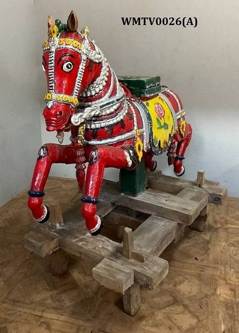 Product Description:Ashwa Vahanam, in the context of South Indian temples, refers to the divine vehicle or mount associated with certain Hindu deities. "Ashwa" means horse, and "Vahanam" means vehicle or mount. The Ashwa Vahanam is typically used during religious processions and festivals, where idols of deities are taken out for a ceremonial ride or parade.